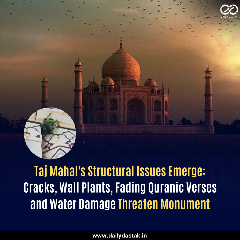 Concerns have been raised about the Taj Mahal’s condition after heavy rains in Agra caused cracks and damage to the