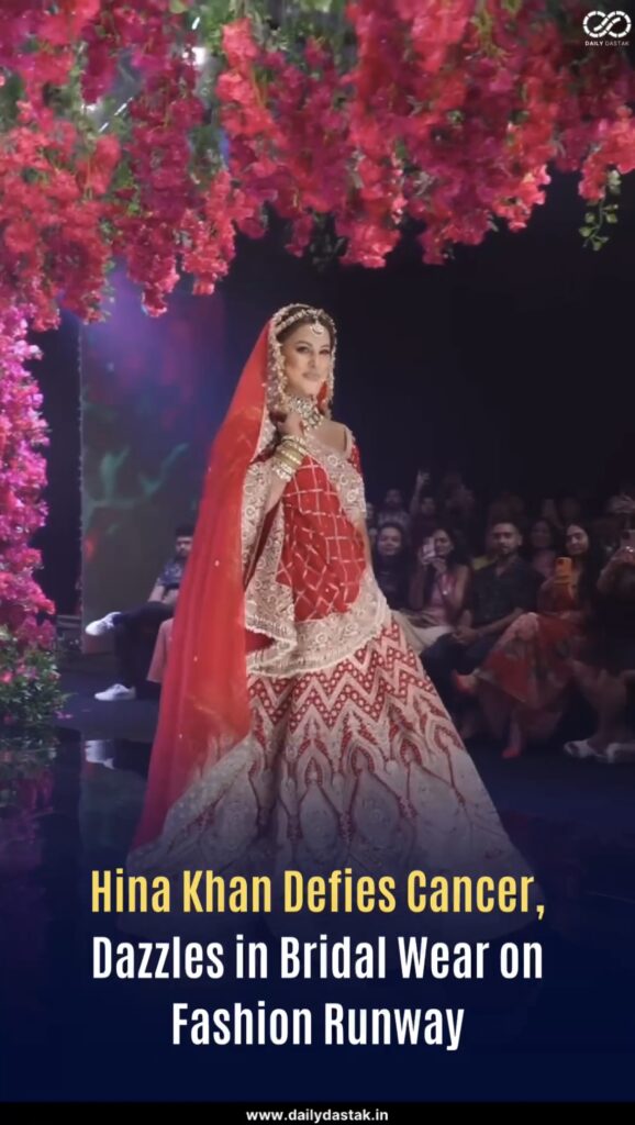 Actor Hina Khan, who is currently being treated for breast cancer, recently walked the ramp in a bridal outfit, showing