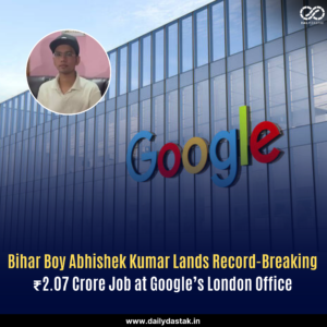Abhishek Kumar, from a small village in Bihar’s Jamui district, has secured a record-breaking salary of Rs 2.07 crore from Google and will start working at their London office in October. A graduate of NIT Patna, Abhishek thanked his parents and older brother for their support. He said, “Getting this job at Google is a huge milestone, and I’m excited to move to London.”